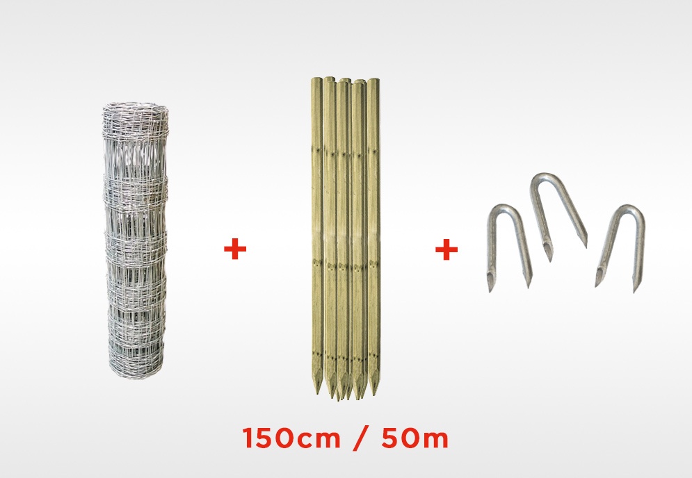 VILTSTÄNGSEL KIT 150CM–50M MED TRÄSTOLPAR
